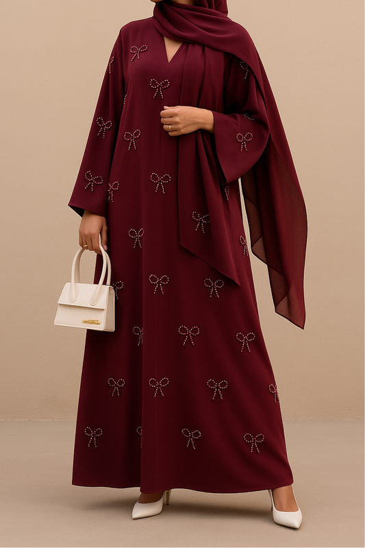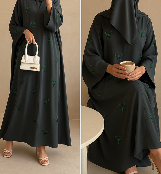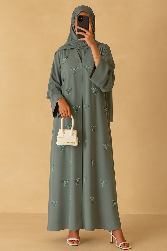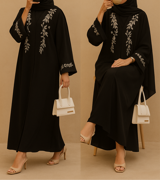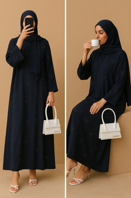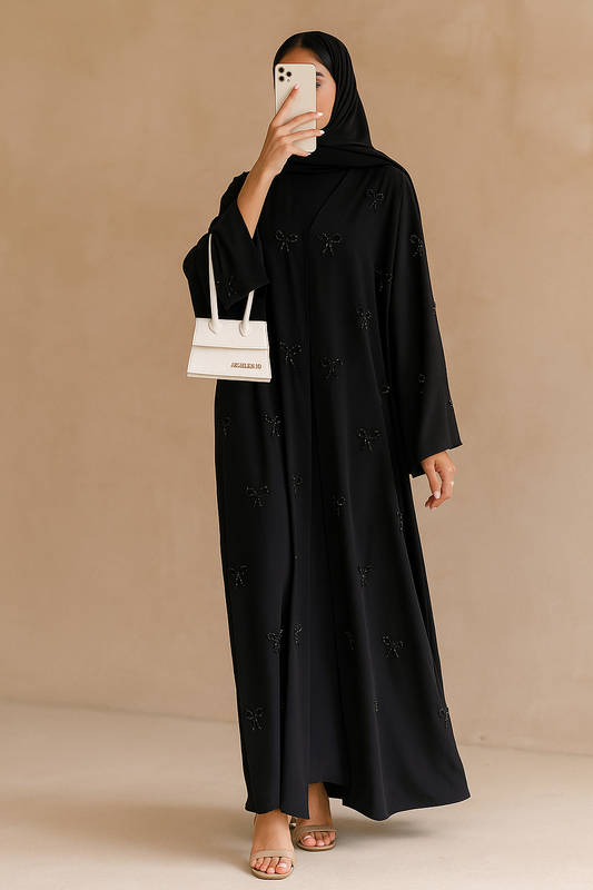 UAE-based fashion Influencer Farha glows in our Best Selling Rainstone Abaya — a piece of elegent she is wearing beautifully, and Styled it with elegance and quiet confidence.