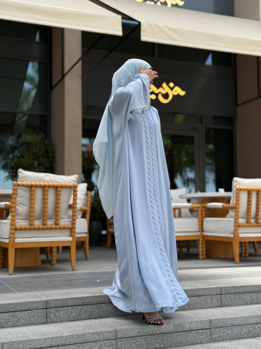 Vibing in Blue BRAIDED ABAYA. ❄️ She wore it, and it came alive — grace in every movement 👜🪞