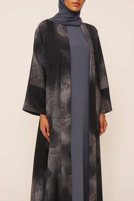 Grey Marble print abaya
