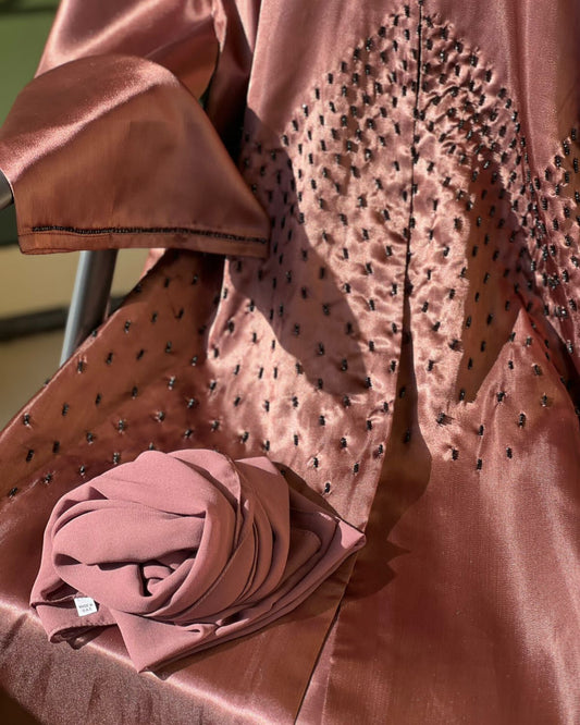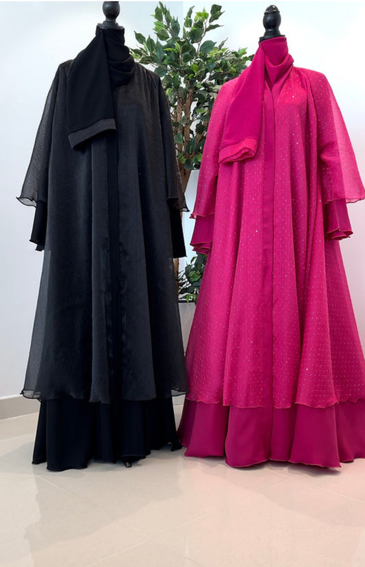 UAE-based fashion Influencer Farha glows in our Best Selling Rainstone Abaya — a piece of elegent she is wearing beautifully, and Styled it with elegance and quiet confidence.