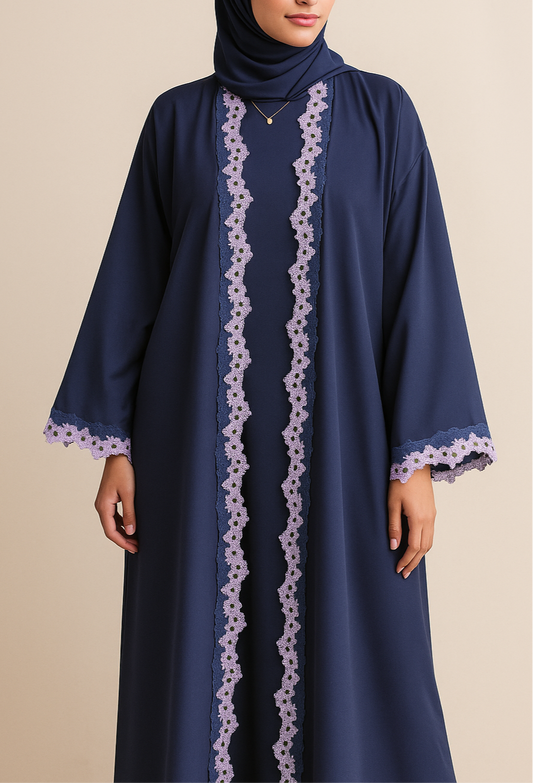 Vibing in Blue BRAIDED ABAYA. ❄️ She wore it, and it came alive — grace in every movement 👜🪞