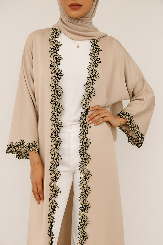 Beige fancy lace abaya