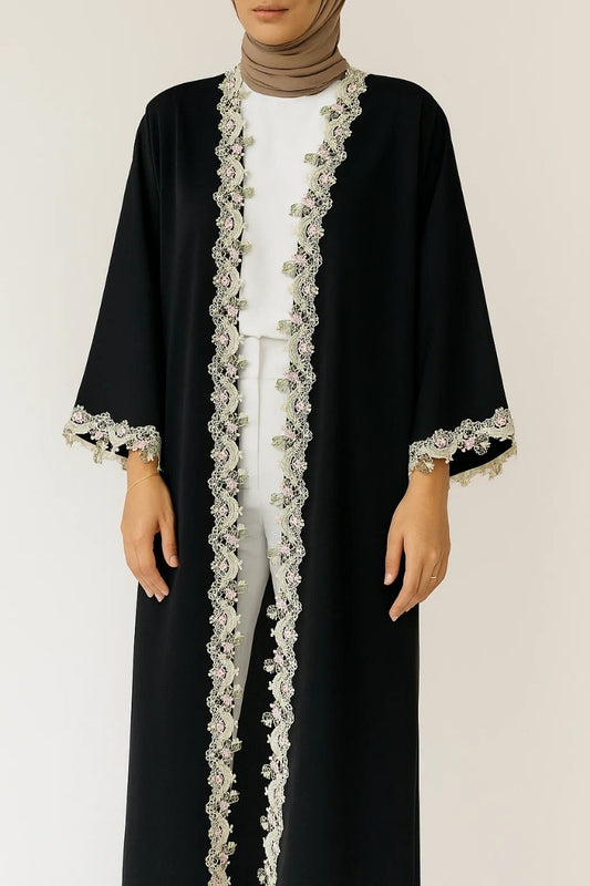 Black floral fancy lace abaya