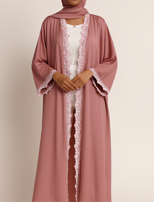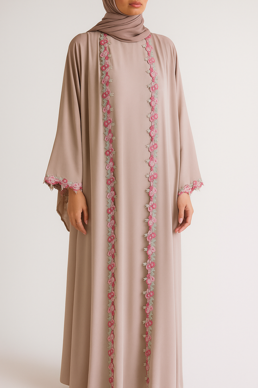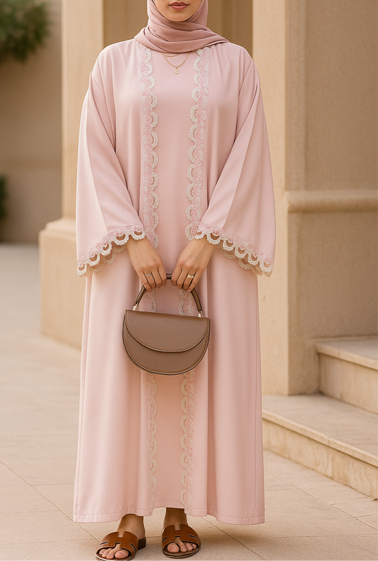 Pink Embroidered lace abaya