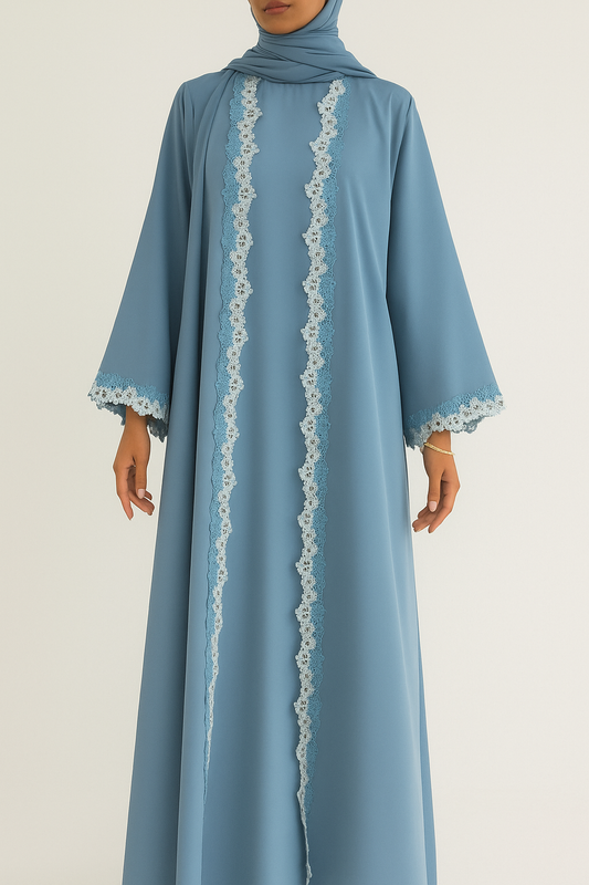 Blue Fancy Lace Abaya