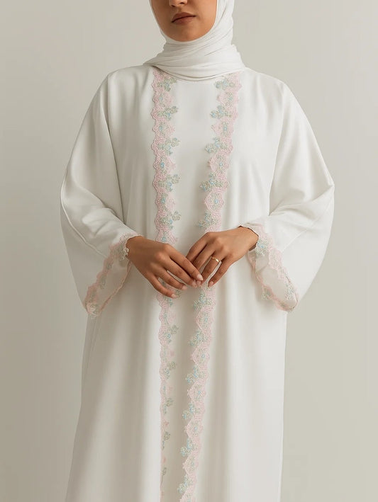 White fancy lace abaya