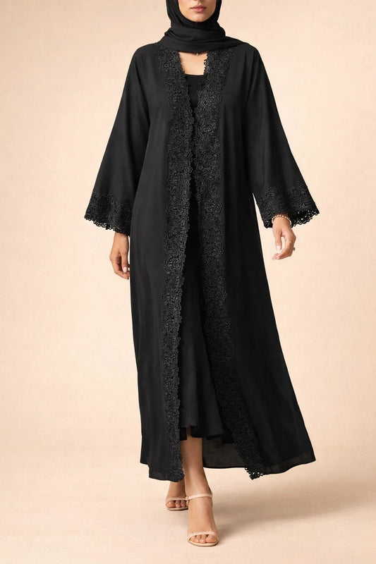 UAE-based fashion Influencer Farha glows in our Best Selling Rainstone Abaya — a piece of elegent she is wearing beautifully, and Styled it with elegance and quiet confidence.
