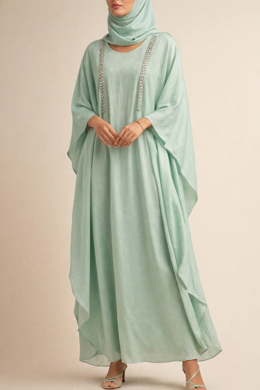 UAE-based fashion Influencer Farha glows in our Best Selling Rainstone Abaya — a piece of elegent she is wearing beautifully, and Styled it with elegance and quiet confidence.