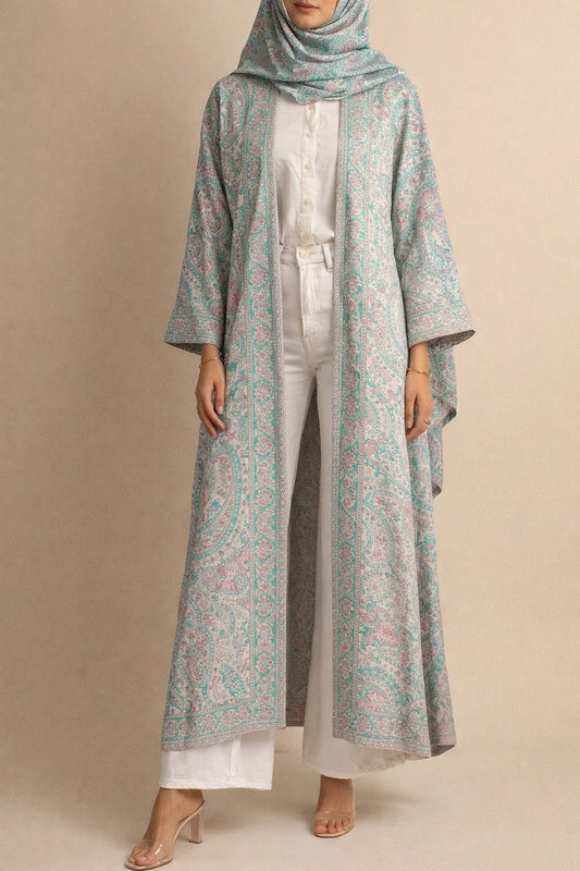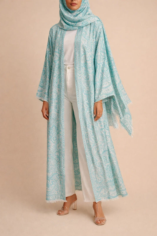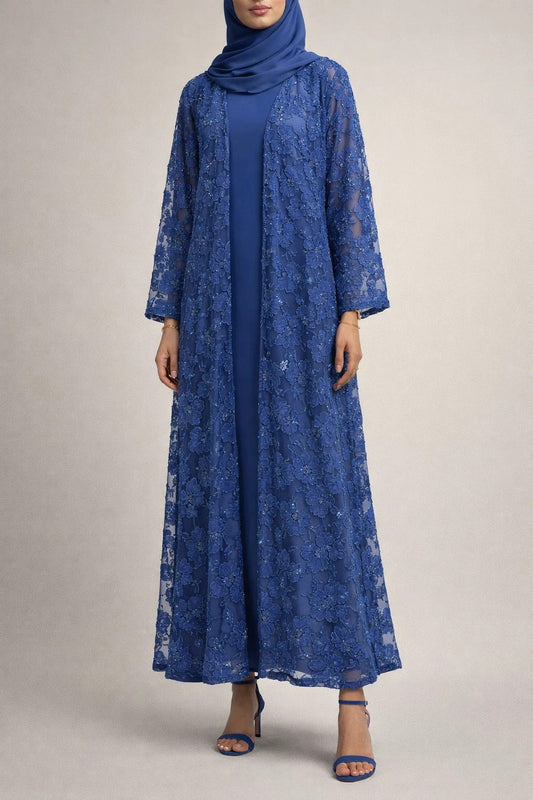 Vibing in Blue BRAIDED ABAYA. ❄️ She wore it, and it came alive — grace in every movement 👜🪞