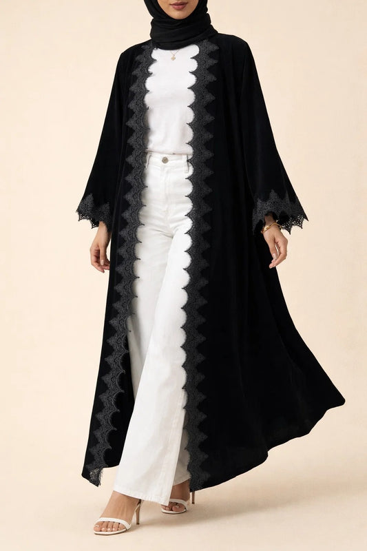 Black Elara Lace Abaya (New)