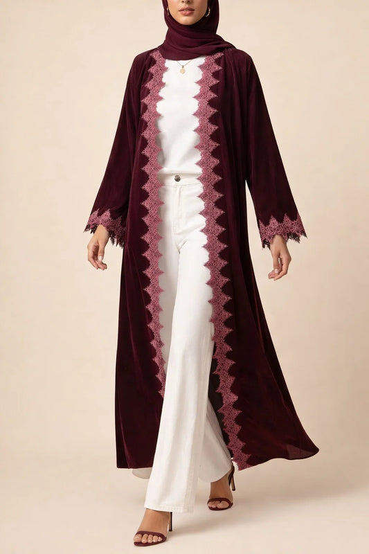 Maroon Velvet Royale Abaya (New)