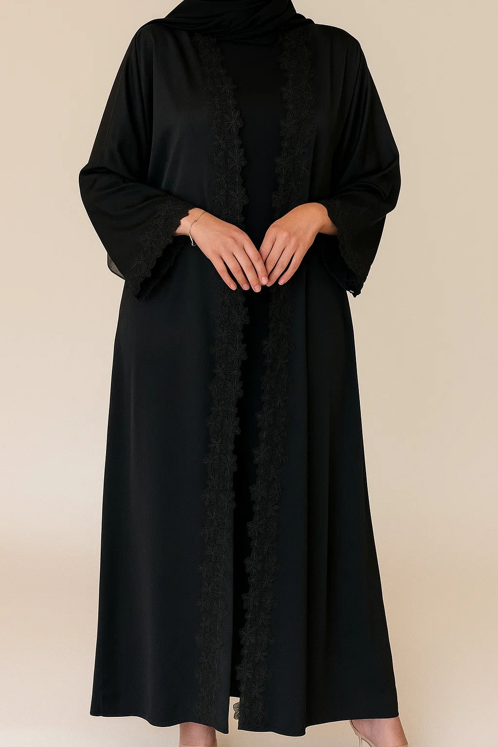 Whether you're attending a special occasion or simply elevating your everyday wardrobe made of plain nidah fabric, the Lace Abaya offers the perfect balance of refinement and comfort.